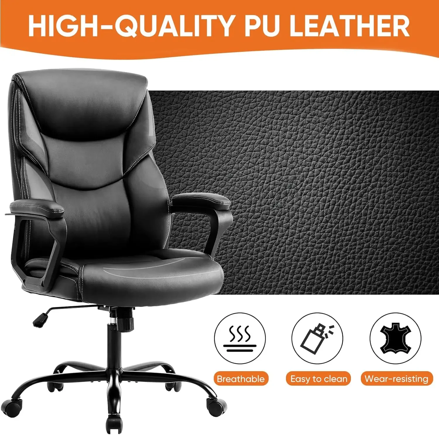 Home Office Chair, Leather Computer Gaming Chair with Armrests, Adjustable Swivel Rolling Desk Chair with Wheels, Lumbar Support, Black